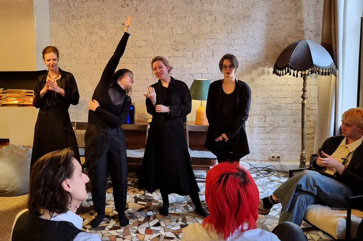 В плейбэк меня привело желание валяться на полу во время разминки. Потом втянулась в истории, нравилось очень свое состояние, когда я видела как ребята проживают мои истории. Потом появился интерес к тому, как можно представить историю слушателя, в зависимости от того, какую форму выберет кондактор.
