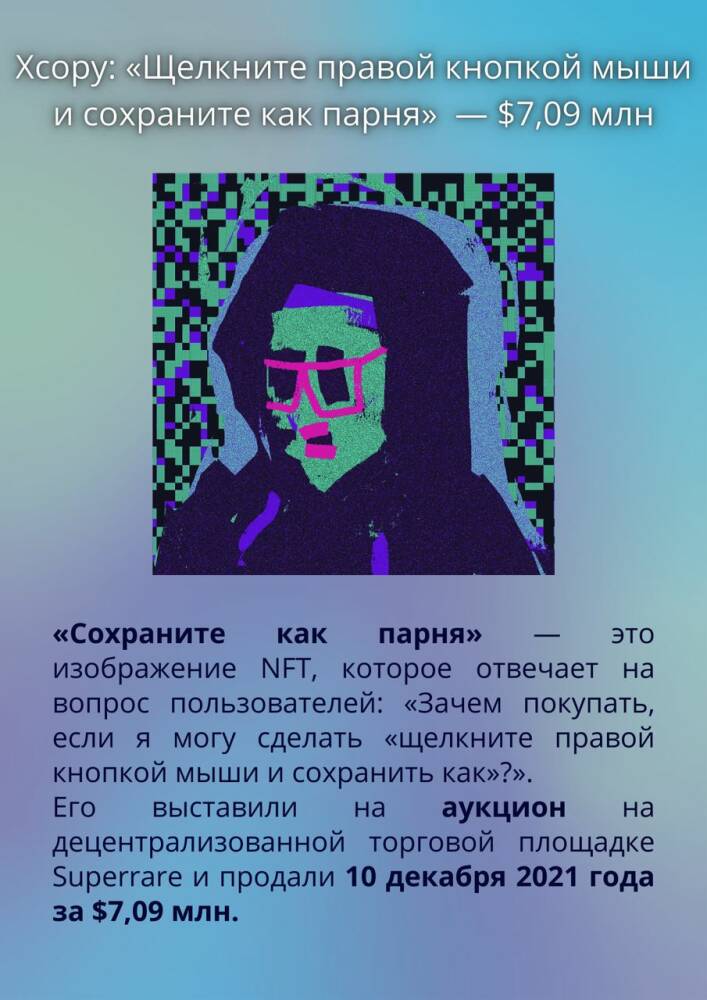 А пока предлагаю разобраться, что такое NFT, тем, кто до сих пор не в курсе. Если в тексте выше для вас было много непонятных слов, эти "карточки" для вас.